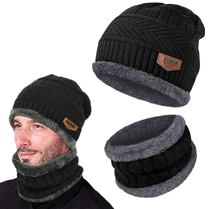 Winter Knit Beanie Woolen Cap Hat Woolen Neck Warmer Scarf Set for Men & Women - set of 2 outdoor winter clothing set, stretchable wool knit set, lightweight winter head and neck cover, gift winter accessory set (No Color Choice)