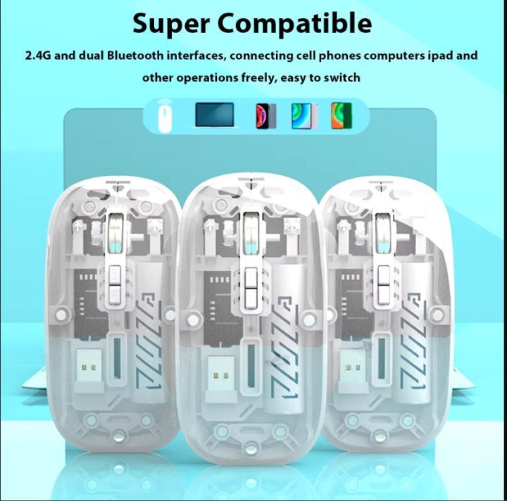 Wireless Gaming Mouse 2.4G Bluetooth Rechargeable Transparent Mouse For PC Computer Gamer For Laptop RGB Silence Ergonomic Mouse