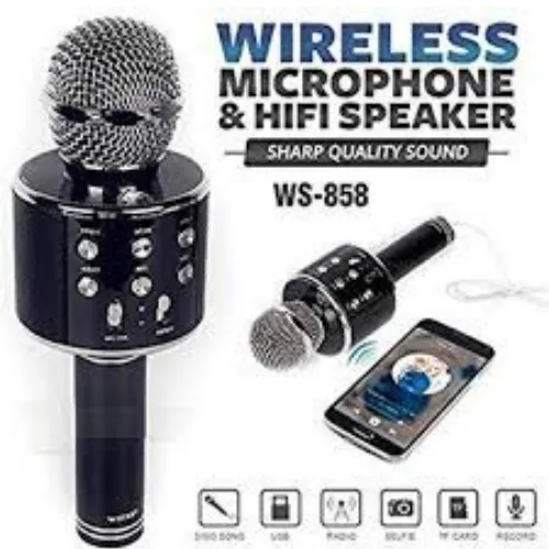 Wireless Mic With Speaker Portable Bluetooth Microphone For Recording With Speaker For Music - 3 in 1 USB / AUX / SD Card Slot Karaoke Handheld Microphone - Golden, Pink, Black, Blue, Grey Colours by sikandar