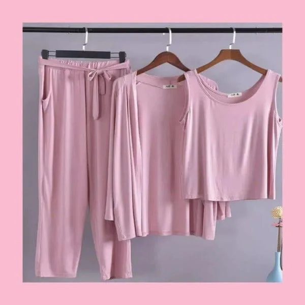 Woman Simple 3pec Loungewear sleeping night Suit for Girls