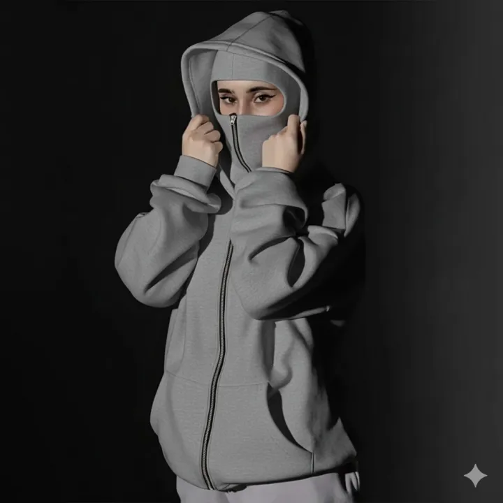 Women Riders Balaclava Zip Hoodie – Wind & Dust Guard, Winter Fleece (S–XL)