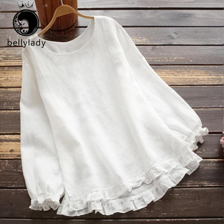 Women%20Simple%20Fashion%20Long-sleeve%20Shirts%20With%20Ruffle%20Pullover%20Round%20Neck%20Solid%20Color%20Loose%20Casual%20Bottoming%20Shirt%20Blouse%20Jacket%20-%20Image%209