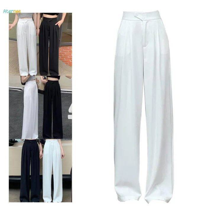 Womens Wide Leg Pants Straight Leg High Waisted Office Loose Long Pants XL White