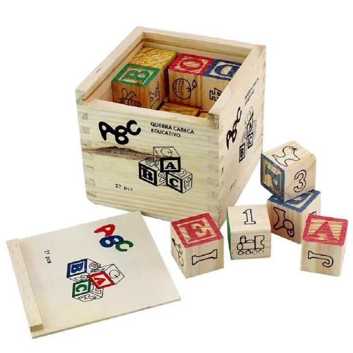 Wooden ABC & 123 Blocks | Stacking Blocks Baby Alphabet Letters, Counting, Building Block Set for Toddlers |Box Storage Case, Wooden (27 & 48 Pieces)