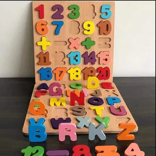 WOODEN ALPHABET NUMBERS & ANIMALS PUZZLE BLOCK BOARD