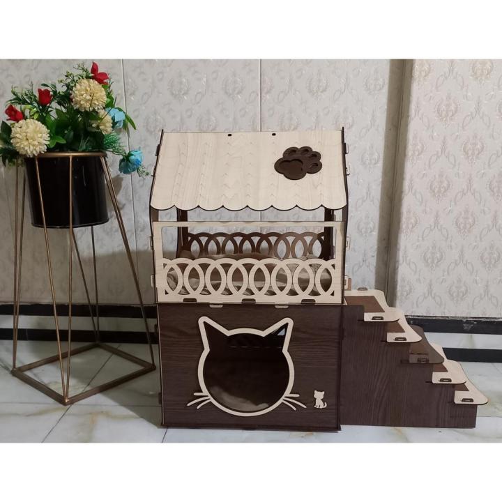 Wooden Cat house - Cat house pine-walnut model