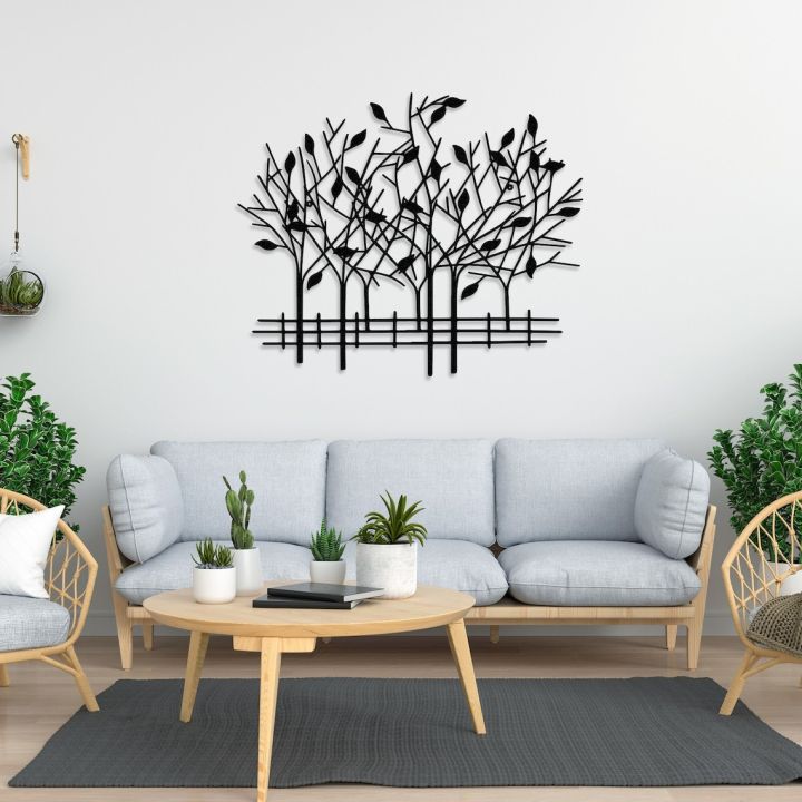 Wooden Geometric Trees with Fence Wooden Wall Art, Branch Wall Decor, 3D Wall Art, Livingroom Decor, Natural Decoration, Geometric Decor by Zento Stores - Customized