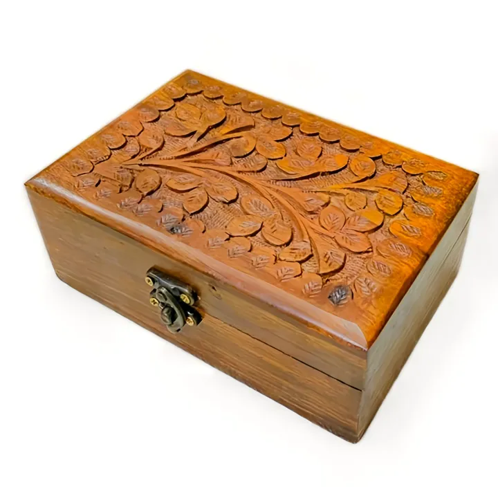 Wooden Hand-Carved Jewelry Box - Floral Handcrafted Home Decor Box, 6x4 Vintage Jewelry Organizer for Necklaces, Rings & Earrings, Compact Storage Box for Women, Premium Sheesham Craftsmanship, Perfect Gift Option, Decorative Small Wooden Keepsake Box