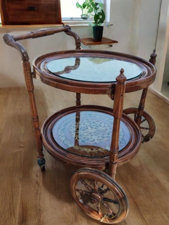 Wooden Handcrafted 2 step trolley in circular shape