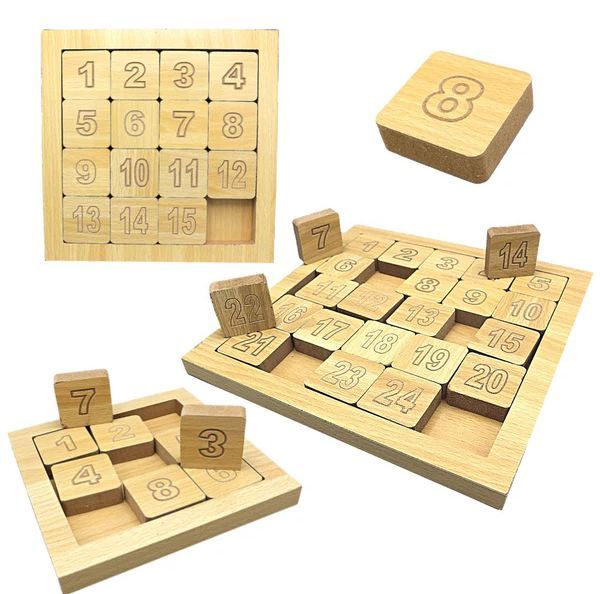 Wooden Number Tiles Puzzle Game – Educational 8, 15, and 24-Digit Moving Puzzle Toy for Kids and Adults – Perfect for Family Fun and Early Learning!