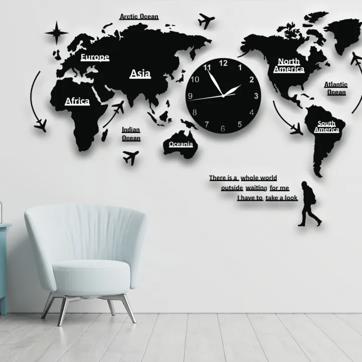 World Map Wall Clocks Modern Design 3D Digital Hanging Clock