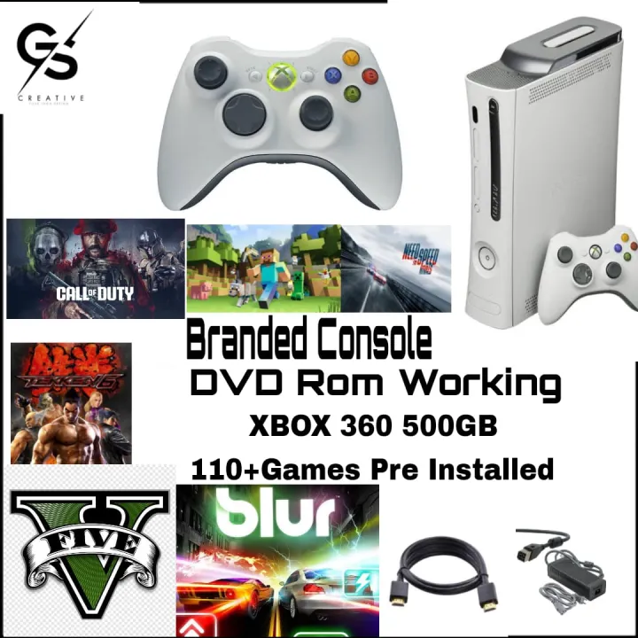 XBOX 360 500GB HARD DISK FILLED WITH 110+GAMES WITH WIRELESS CONTROLLER POWER CABLE POWER SUPLY HDMI
