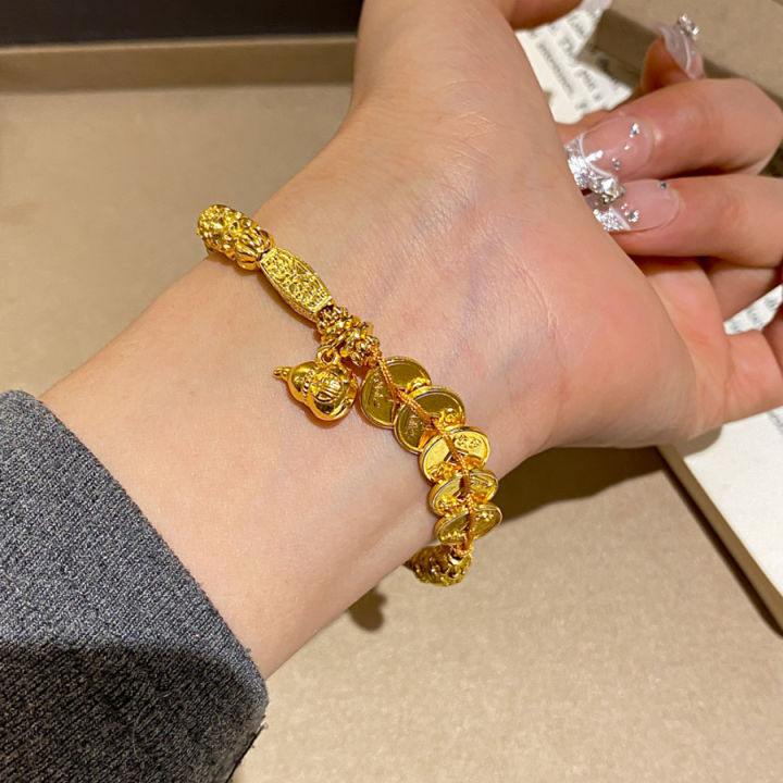 Xiaohongshu same ancient gold small gourd bracelet female exquisite five emperors money daily gold plate wrapping hand jewelry wholesale