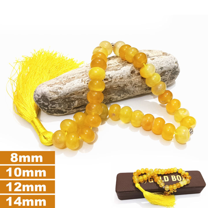 Yellow Color Aqeeq Stone Tasbeeh 33 Beads (Size 8MM 10MM 12MM 14MM) - Fancy Men and women Choice Color Tasbih (Agates) muslim Agate zikr prayer Tasbeeh - handmade Rosary 12mm tasbi counter Stress Relaxation