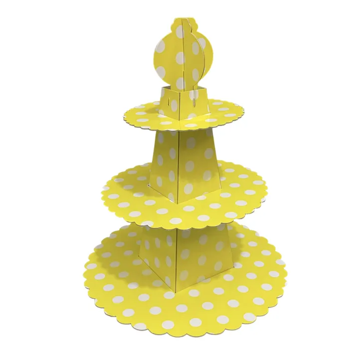 Yellow Polka Dot Cupcake Stand - 12 inch height - 3 Tiers Cupcake Stand - Yellow - Unisex - Pack Of 1