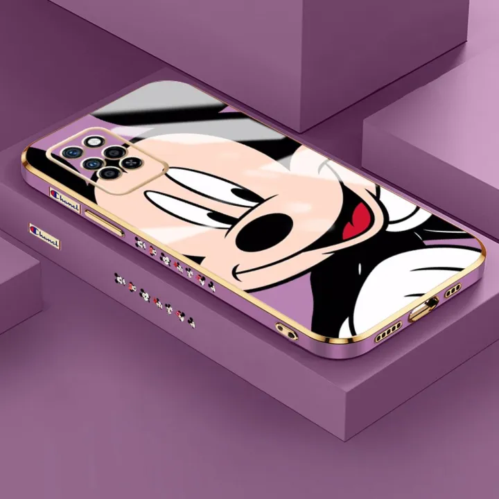 YIWESAN Case For Infinix Note 10 Pro NFC Case Cartoon Mickey Mouse Side Design Phone Case Square Edge Pattern Silicone Softcase Luxury Plating Casing Full Cover Camera Shockproof Protection Cases