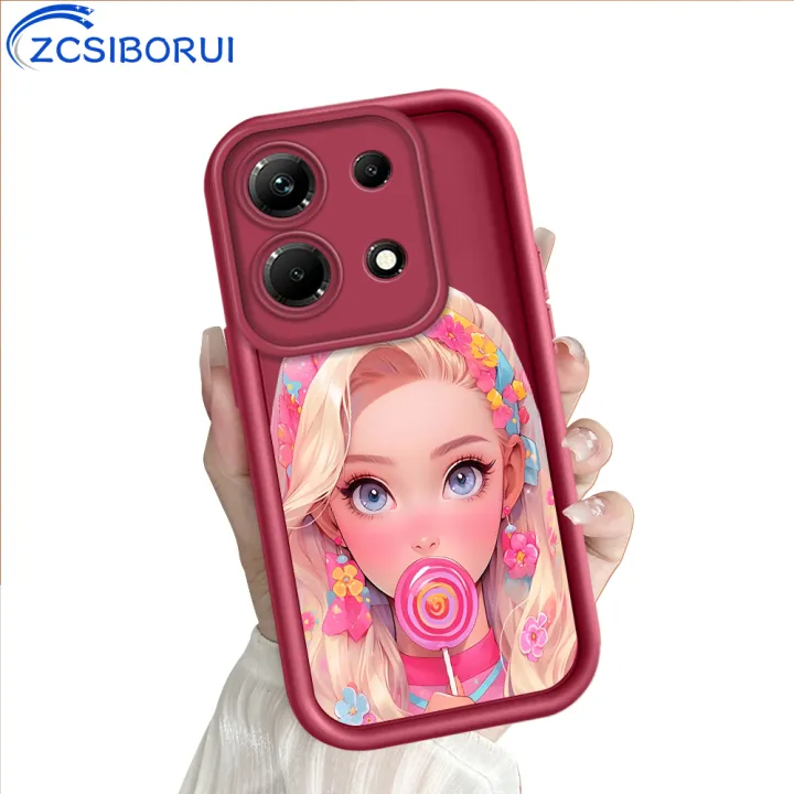 ZCSIBORUI for Infinix Note 30 4G 5G Back Cover Pink Lollipop Barbie Pattern Soft Camera Protection Rubber Square Ladder Phone Case