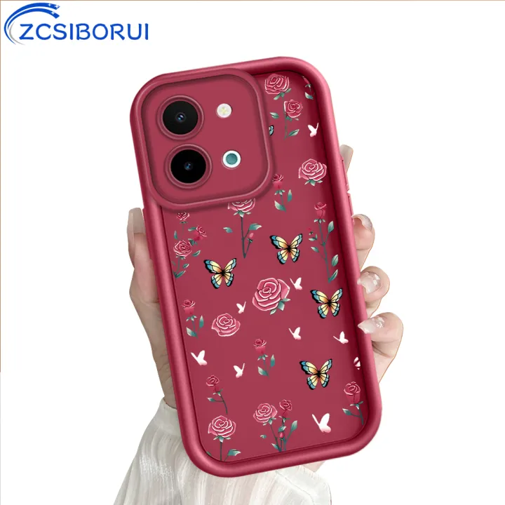 ZCSIBORUI for Vivo Y28 4G Back Cover Rose Flower+Butterfly Pattern Soft Silicone Square Ladder Phone Case