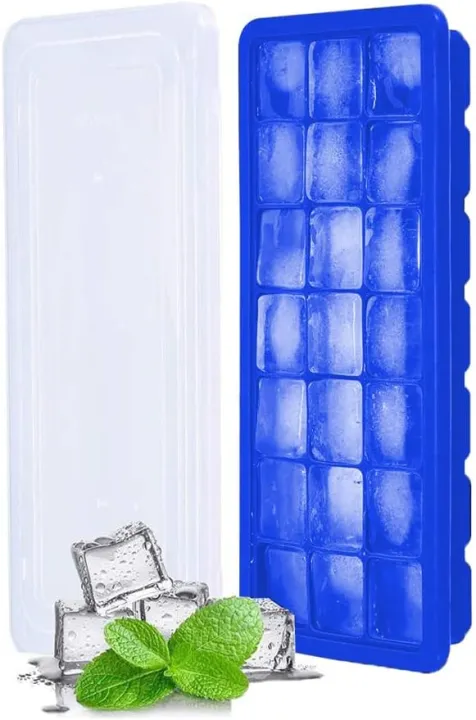 ZF Easy Push Pop out Square Silicon Ice Cubes Tray 15 Cubes WITH LID